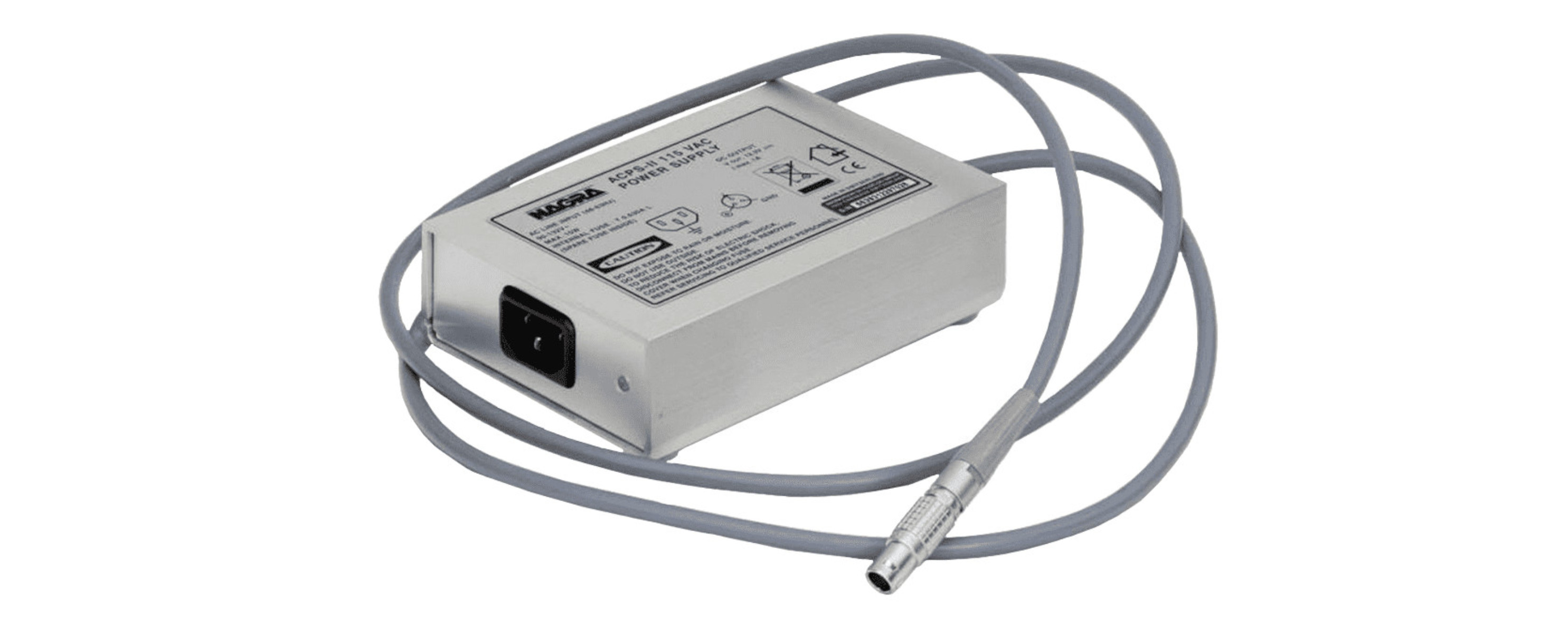 ACPS III Dimensioni 140x 94 x 44 mm / 5,5 x 3,7 x 1,7 pollici Ingresso sul connettore IEC Peso 940 g  / 2.07 libbre Cavo incorporato con connettore Lemo assicurato 1,6 m 115 V versione 90 - 132 V 240 V versione 180 - 264 V 48-63 Hz Uscita CC 12,3 V, max 1 A