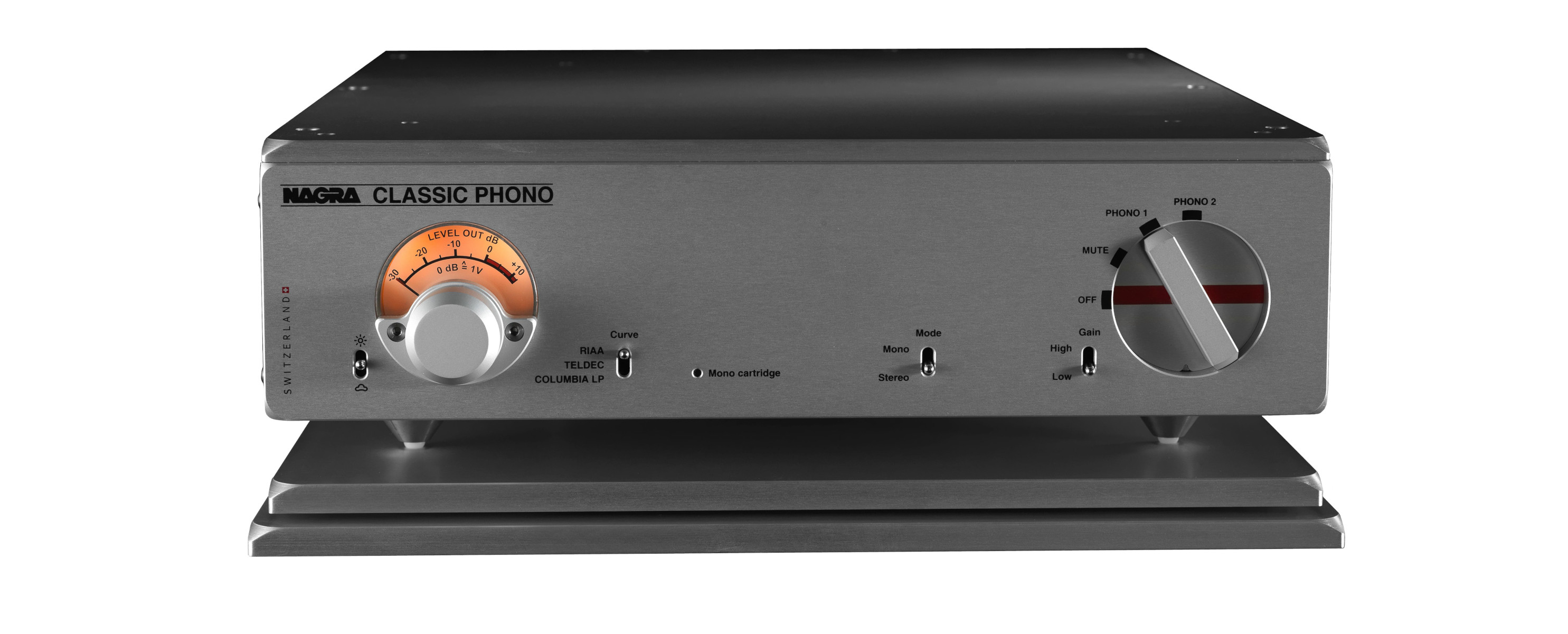 Dopo molti anni di successo e stima, il Nagra VPS è stato sostituito dal CLASSIC PHONO. Il VPS, a sua volta ispirato al leggendario Nagra PL-P, è un preamplificatore di phono molto rispettato. Il VPS è stato la base che abbiamo utilizzato e il prodotto evidente per il benchmark del nuovo design. Nuove generazioni di trasformatori di input su misura Nagra, completamente a tubo in Classe A che totalizzano quattro triodi, dotati di due ingressi, uno MC/MM e uno MM, caricamento regolabile e personalizzabile per la cartuccia, selezione di curve RIAA, TELDEC e COLUMBIA, permette di ospitare cartucce mono, selettore mono per dischi mono realizzati con un tagliatore stereo, guadagno regolabile da 38 a 64 dB, nuova alimentazione incorporata silenziosa, può essere aggiornato con una PSU Classic. L'ingresso MC presenta una nuova generazione di trasformatore Nagra su misura che utilizza il core magnetico speciale dell'HD PREAMP. La selezione di guadagno sul pannello frontale consente di abbinare facilmente la cartuccia o il disco. Per le cartucce MC, guadagno di 54 o 64 dB, per MM, 8 o 48 dB. Le diverse e numerose impostazioni consentono di abbinare la propria collezione di cartucce e il disco molto da vicino. Il CLASSIC PHONO utilizza esclusivamente tubi come componenti elettronici attivi. 2x E88CC/6922, 1x ECC81/B739, 1x ECC83/B759. Tutti i tubi vengono sottoposti a selezione individuale dal laboratorio Nagra. Le prime note colpiscono con densità ed estensione. Il CLASSIC PHONO impressiona immediatamente con la sua qualità pura. La risposta di fase lineare è chiaramente udibile con un'immagine stereo e 3D molto fedele. Il timbro degli strumenti è estremamente naturale. Dopo alcuni minuti di ascolto critico, si ha semplicemente voglia di riscoprire la propria collezione di musica e divertirsi! L'alimentatore di alimentazione CLASSIC PSU, derivato dalla linea HD, porterà il CLASSIC PHONO a nuove vette.