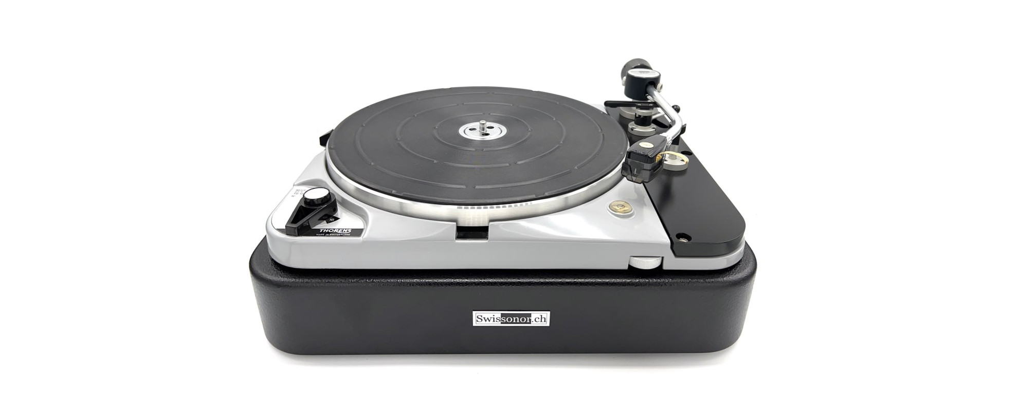 Giradischi con piatto non magnetico per il classico Thorens TD 124, dotato di diverse parti di aggiornamento Swissonor e dichiarato prodotto dell'anno nel 2008 da Art Dudley di Streophile, un giradischi di oltre 50 anni che è un riferimento assoluto ancora oggi. Swissonor produce una linea di prodotti originali con l'unico obiettivo di ottenere le migliori prestazioni sonore da sorgenti analogiche. Offre un'attenta evoluzione dei grandi classici, con componentistica di qualità assoluta, un design funzionale e facile da utilizzare, con la famosa precisione artigianale svizzera.