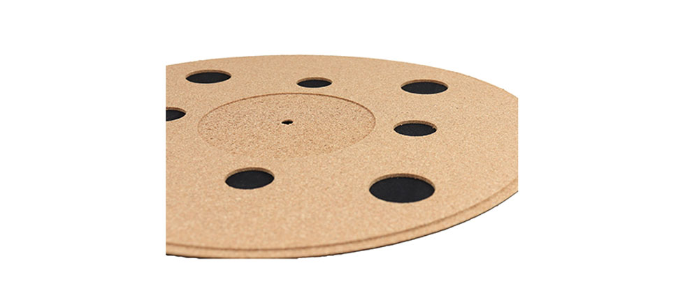 Lo spessore è di 1,5 mm. Lo spesso strato superiore è realizzato in vero sughero con un plateau centrale più profondo per una perfetta connessione dell'etichetta discografica inoltre il tappetino ed è dotato di 8 fori. I fori forniscono uno smorzamento ulteriormente migliorato.