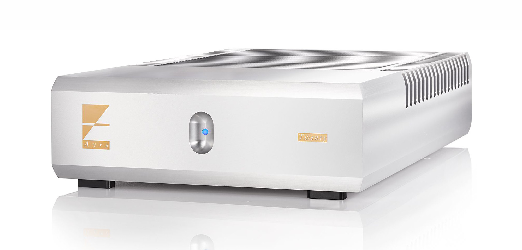 300 watt per canale erogati su un impedenza di 8 ohm, potenza destinata a raddoppiare su un carico di 4 ohm: questi i meri dati di targa che, tuttavia, non riescono da soli a descrivere le potenzialità qualitative, e non solo quantitative, di questo amplificatore: la circuitazione oramai tipica di Ayre (completamente bilanciata e con zero-feedback) è racchiusa entro un cabinet di proporzioni molto eleganti che comprende nella parte posteriore le alettature di raffreddamento ricavate direttamente con l’utilizzo del telaio metallico dell’amplificatore; due i trasformatori di alimentazione che consentiranno il pilotaggio di qualsiasi sistema di altoparlanti con una chiarezza ed un realismo insuperabili.